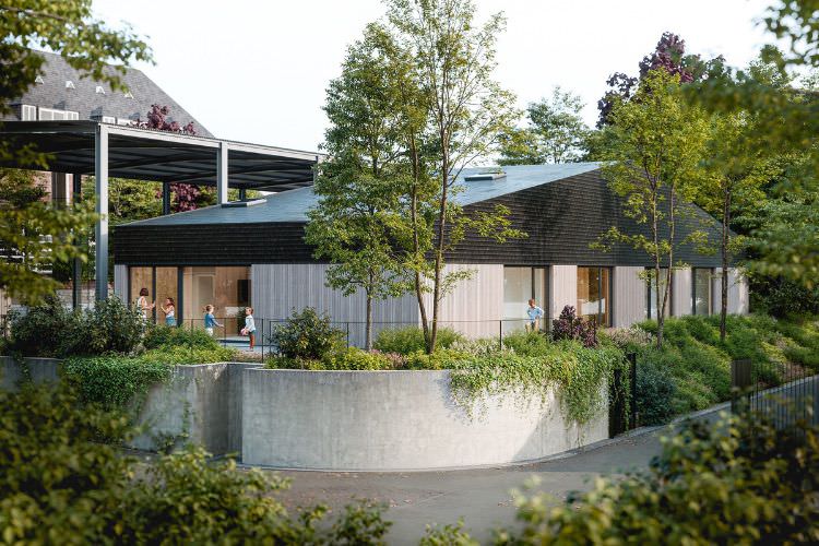 La cour de l’école du Centre, située dans l’un des quartiers de Woluwe-Saint-Pierre le plus sujet à l’effet d’îlot de chaleur urbain, fait actuellement l’objet d’un projet de déminéralisation et végétalisation. Dans la phase 1, en 2025, la cour est restructurée pour offrir un espace plus qualitatif et structuré pour les élèves, avec le déplacement de jeux existants, le retrait d’environs 100 mètres carrés de dalles béton remplacés par des aires de copeaux, et la rénovation de l’escalier permettant d’accéder au jardin en fond de parcelle. Dans les phases suivantes, la Commune souhaite déminéraliser davantage, végétaliser plus intensément la cour, et intégrer des ouvrages de gestion des eaux pluviales, afin de rendre la cour plus agréable et fraîche.