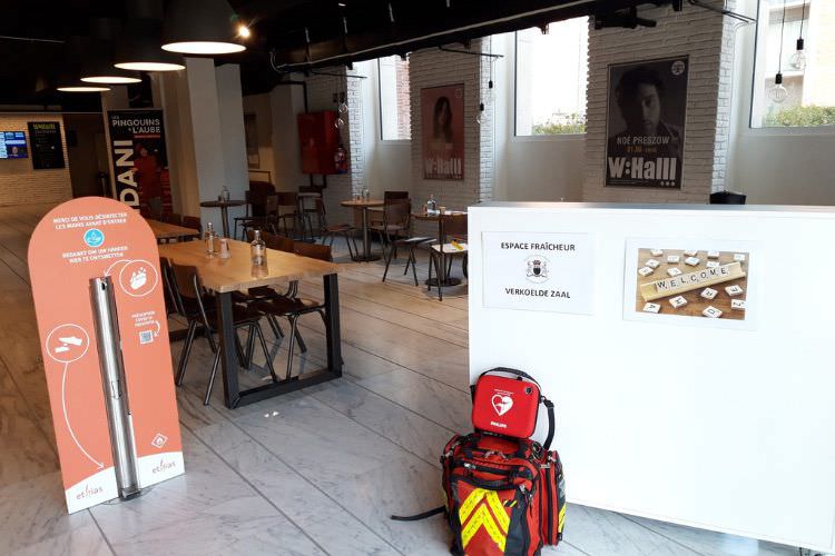 Jusqu’au 30 septembre inclus, la commune offre plusieurs services. Dès 30°C, un lieu frais est mis à disposition dans le patio du Centre culturel W:Halll, où vous êtes accueilli par les équipes de la Croix-Rouge ou de la commune, du lundi au vendredi de 10h à 17h. De l’eau, des fauteuils, des chaises et des tables sont à votre disposition.